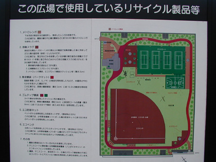 この公園を構成するベンチ、防球ネットなども、それぞれ白色トレイやペットボトルの再生利用。