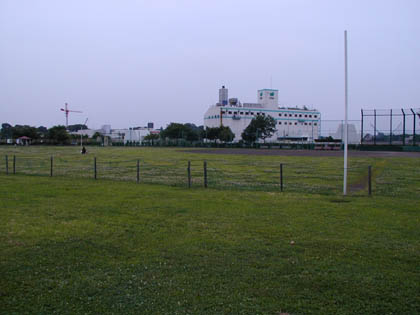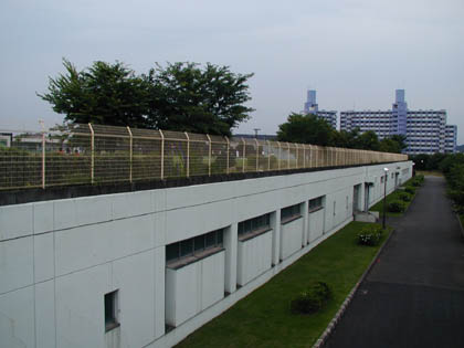 上記写真の手前の赤い部分は、屋上の外周を走るランニング用の歩道兼走路です。