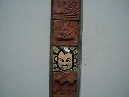 上の写真をよく見ると、タイルの中にガンダムっぽいヤツがいます。
