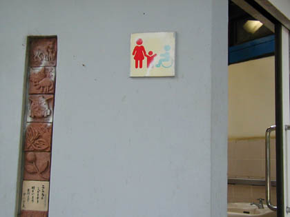 上の写真にあるシンボルマークを信じるならば、男性用トイレの入り口は左にあるように思えますが、実は左の入り口は女性用トイレ。