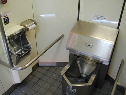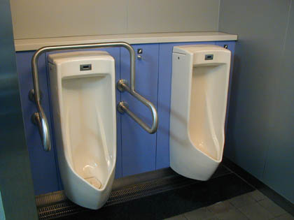 上記写真右側が小用。左側が和式トイレ。真ん中が多目的トイレとなっております。
