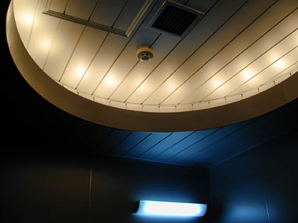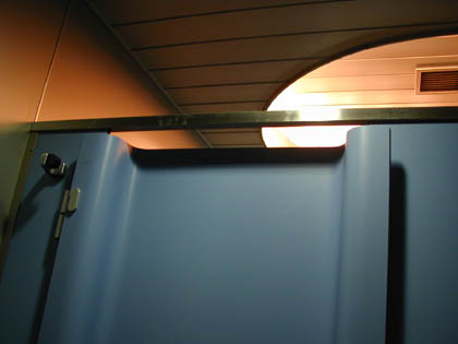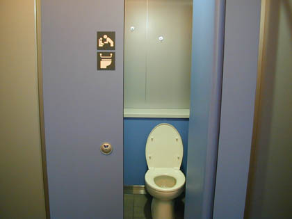 個室の便器も含め、洗面台も壁も青色で統一された公衆トイレタイプです。