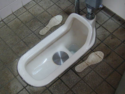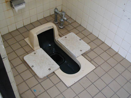 和式トイレを普通に利用する時は、しゃがむ場所――その立ち位置を考えなければなりません。