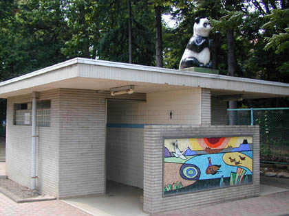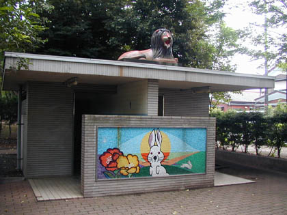 この公園にもう一つある西側のトイレの上にも守護神がおり、