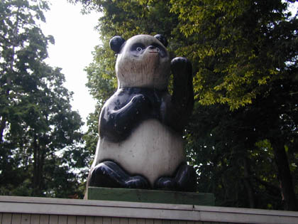 好戦的なパンダが睨みを効かせているこのトイレの中の様子は、