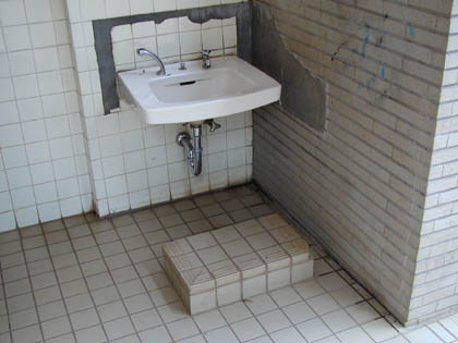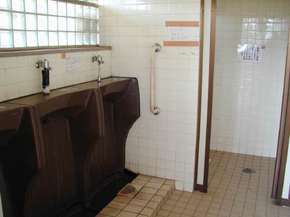 敷居で外と中とを区別するタイプの半開放型公衆トイレですが、