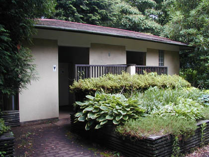 分園内の地図を見ると、園内の会館に多目的トイレがあるようですが、会館は常時閉鎖中ですので、多目的トイレをご利用の方は、分園を出て西にある神代植物園の駐車場にあるトイレか、分園を出て東にある深大寺公園内のトイレにある多目的トイレを利用するといいでしょう。