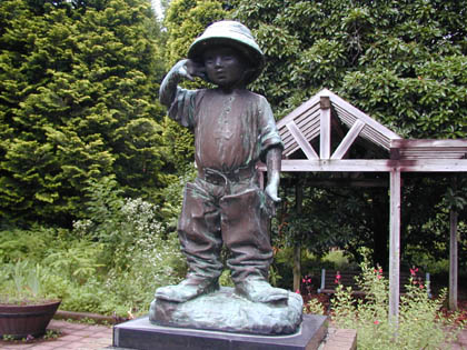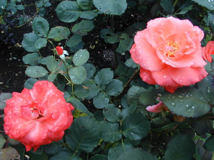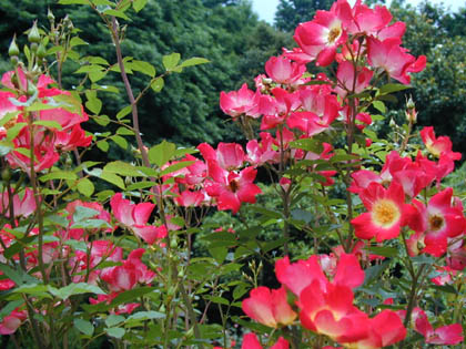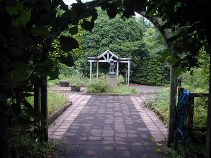 芝生の広場にある花壇には、バラなどが咲いています(六月現在)。