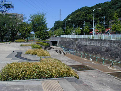 用水路の向こうに見えるのは川崎街道でして、この道を3キロばかり西へ行くと聖蹟桜ヶ丘駅前までいけるのですが、この公園より1.5キロばかりのその道のりは、ずっと上りの一本道。