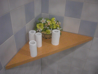 使い終わった芯無しトイレットペーパーの残った芯置き場になってる入口の角。
