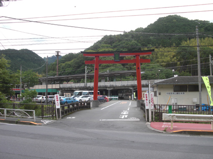裏手に神社があるので、京王高尾山口駅前にある駐車場の入口には鳥居が建っています。