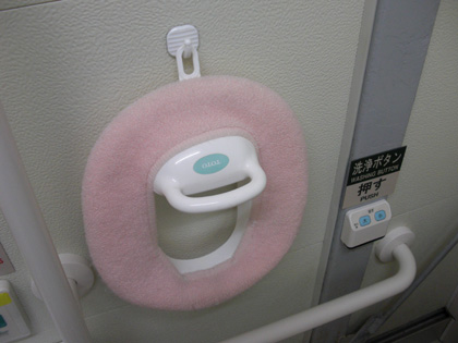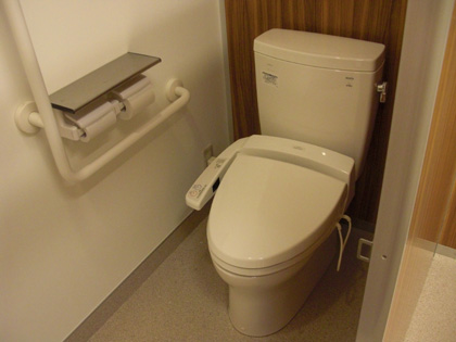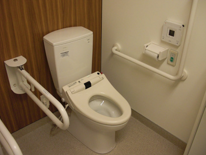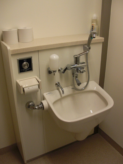 そのほか多目的トイレには、温水対応のシャワー付きオストメイト専用便器もあっていい感じです。