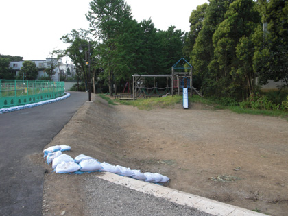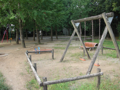 遊具などのある広場側は、遊歩道から一段低い場所にあるため、