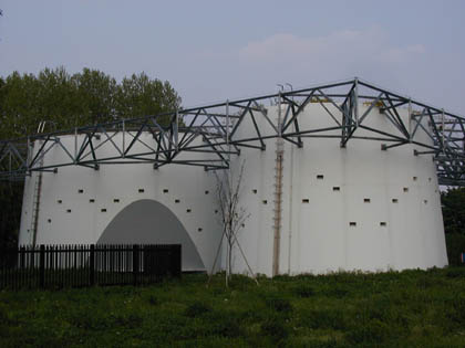 四角い銃眼があちこちに開いた西洋のお城の外備え「バービカン」を想わせる・・・・・・