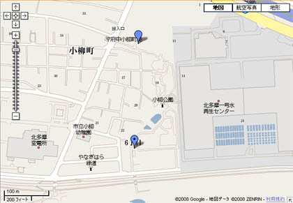 その水処理施設の南西部分にある公園が小柳公園です。