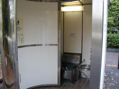 この多目的トイレは「マルチタイプトイレ」と呼ばれているもので、府中市でしばしば見られる、ちょっとした仕掛けというかメカニカルなトイレです。