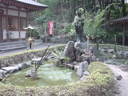 弁財天様から直々にお水のサービスが受けられる池の前に出ます。