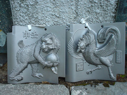 七福神を祭る廟の回りには十二支の縁起物の瓦