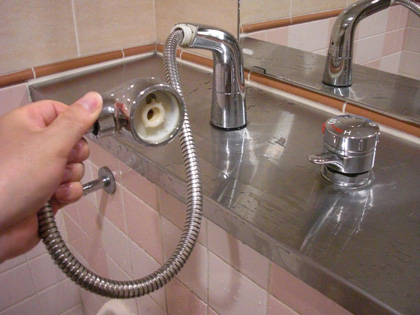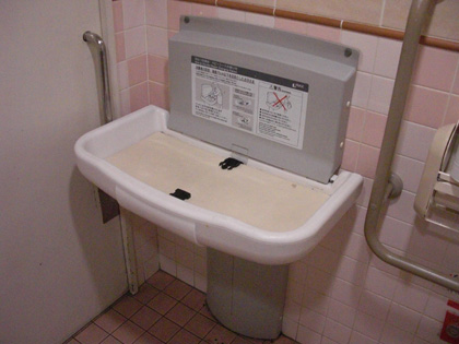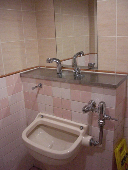 調査時。オストメイトの温度調節ツマミが壊れており、何処に回しても熱湯しか出ませんでした・・・というかお湯の温度熱すぎ。触れないよアレ。