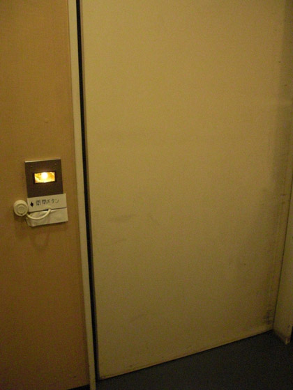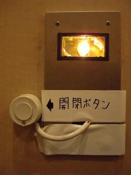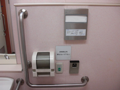 ここの多目的トイレのドアの開閉ボタンは、外側も内側も上の写真のような〝ブー〟と鳴りそうな呼び鈴スイッチな感じ。