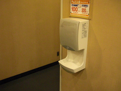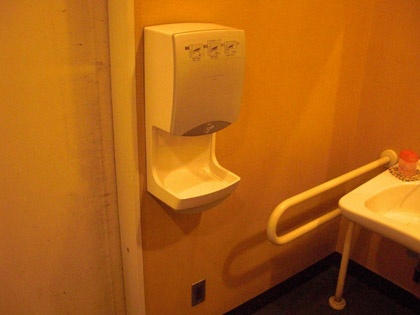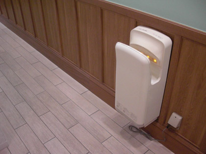 廊下の突き当たりにはエアータオルと、