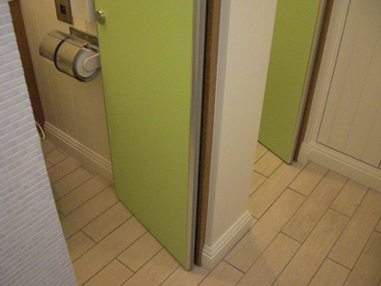 個室トイレの扉はキレイなライムグリーン。