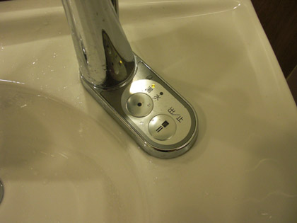 自動水栓ではありますが、「出/止」ボタンで出しっ放しにできるほか、蛇口から出るモノをお湯と水とで選ぶことが可能です。