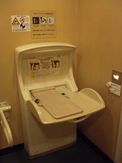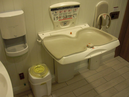 多目的トイレにはオムツ台が用意されています。