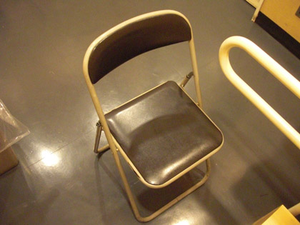 子供用洋式便器のすぐそばには、トイレを見守る親御さん用でしょうか?パイプイスが置いてありました。