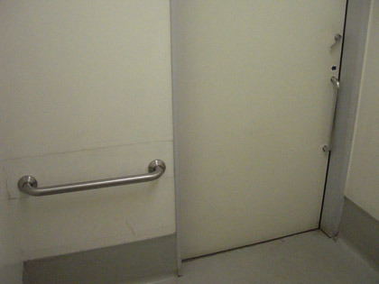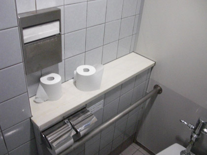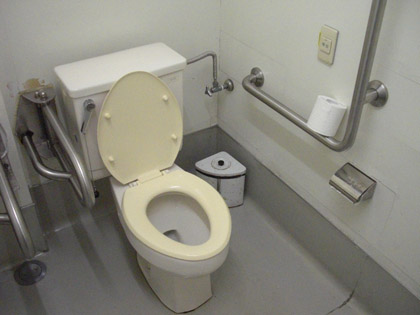 補助用の手すりが通常の個室トイレと比べ充実している感じです。