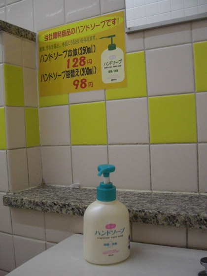 このハンドソープここのオリジナル商品らしく、上に広告が貼ってありました。