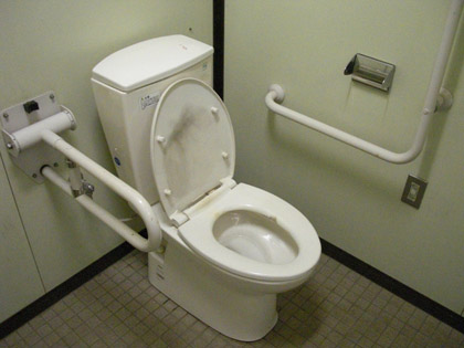 多目的トイレの洋式の便座は、何があったのか煤汚れておりまして、