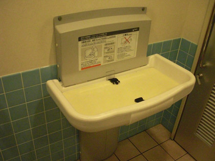トイレ内にオムツ台はあるが、専用のゴミ箱はないので使用済みオムツはお持ち帰りするほかはない。