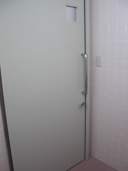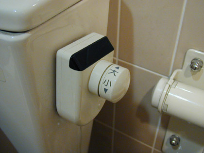 多目的トイレはリモコン洗浄を採用してるのに、肝心のリモコンがないとは・・・・・・しょうがないので手で回してください。