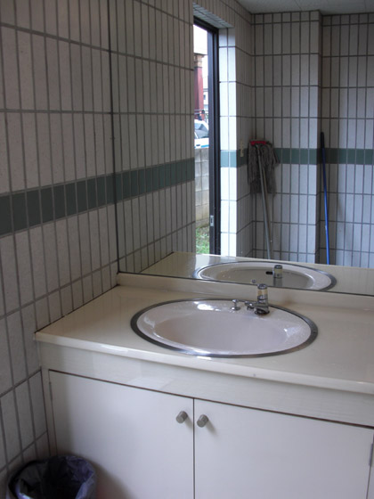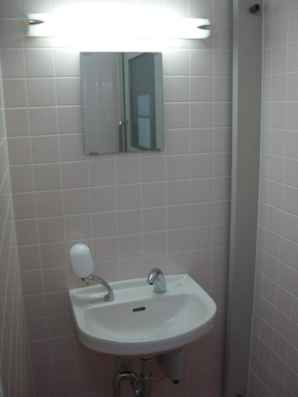 トイレ入口ドアを入ると、すぐ右手に自動水栓の洗面台。