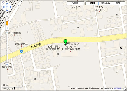 新秋津および秋津駅から南へほどなく歩いたところ、