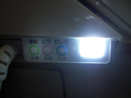 その便座に柔らかライト(常夜灯)が煌々と