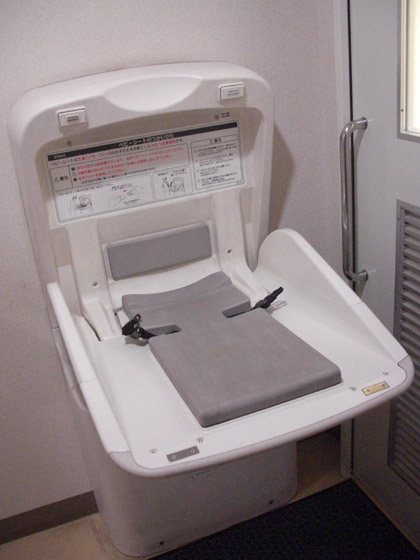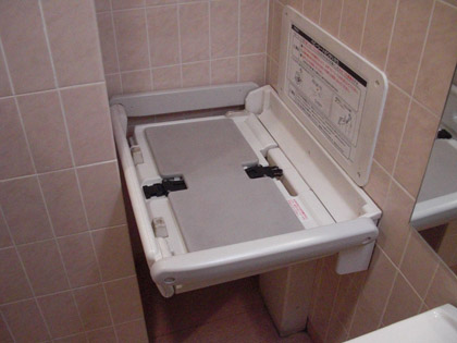 オムツ台はありますが捨てる場所がありません。使用済みオムツはお持ち帰りなトイレですな。