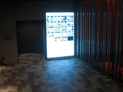 1階エントランスフロア(光り輝く掲示板の後ろに多目的トイレ)