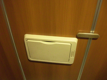 トイレを出る時に、何かの拍子で「閉」のボタンを押してしまい、誰も中にいない状態で多目的トイレの扉がロックされてしまう、次の利用者が困ってしまうという状態も起こり難くなりますなぁ。