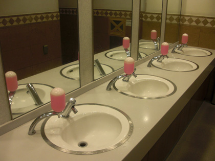 洗面台には液体石鹸。