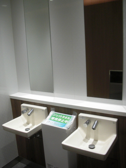 石鹸やエアータオルのある洗面台も縮小され、コンパクトにまとめられました。