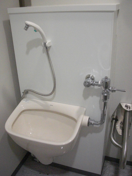 給湯仕様ではありませんが、シャワーヘッドノズルタイプのオストメイト専用便器が設置されています。