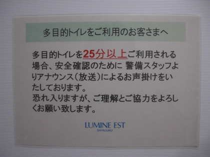 多目的トイレで25分以上ガンバルと、警備スタッフとおしゃべりできるようです。