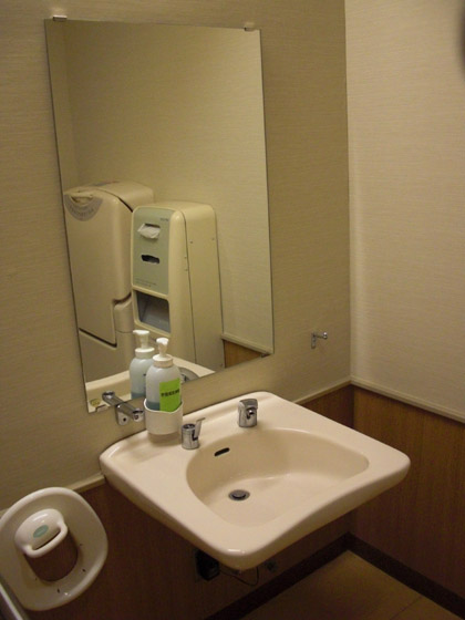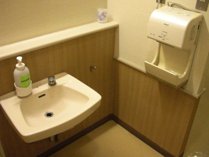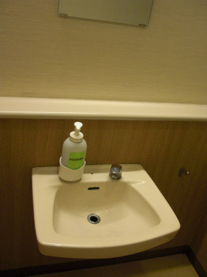 あと、多目的トイレの洗面台にも液体石鹸がついてます。