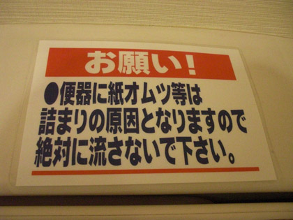 便器に紙オムツ等は詰まりの原因となるので流さない