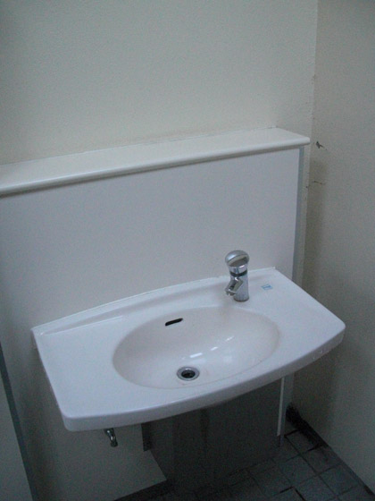 自動閉栓の洗面台には鏡はありません。