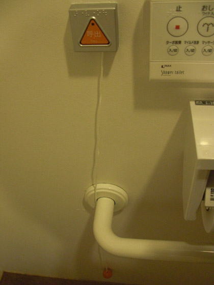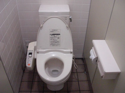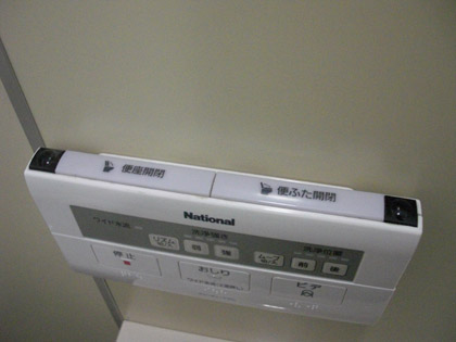 この手の操作パネルの上部角のボタンは、「小」「大」の洗浄装置のリモコンを兼ねているものがあったりしますが、上のは「便座の蓋」「便座の蓋&便座」を上げ下げするボタンとなっています。