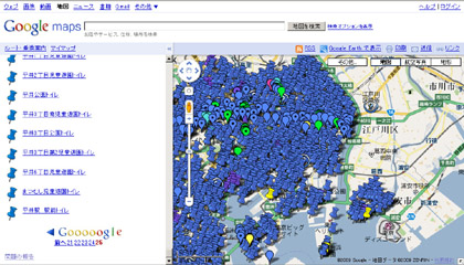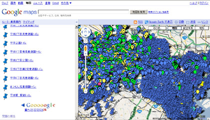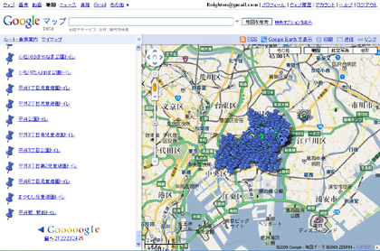 葛西臨海公園に追加した分の押しピンが作業画面から消えている・・・・・・・左のメニュー画面の下、“goooogle”のインデックスも「25」ページ止まりで先がない。