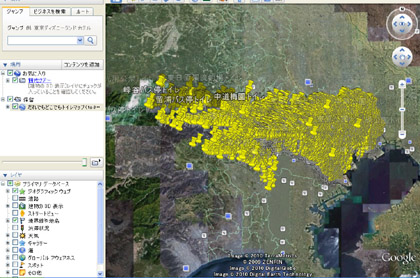 試しにグーグルアースにデータを流し込んでみたところ、こちらでは5000を越えた分も大丈夫のようだ。